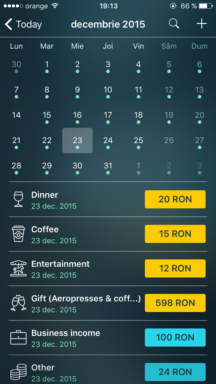 1.În mod direct, cap de listă ca lucru pozitiv a fost faptul că devii mai prezent în viaţa ta şi conştientizezi din ce în ce mai bine câţi bani intră, câţi bani pleacă şi mai ales de unde intră şi unde pleacă toţi acesşti bani. Îţi doreşti să fii mai prezent în viaţa ta, aşadar iată un instrument care te ţine ancorat în momentul prezent, pentru că atunci când ai efectuat o operaţiune, imediat o şi înregistrezi în aplicaţie.